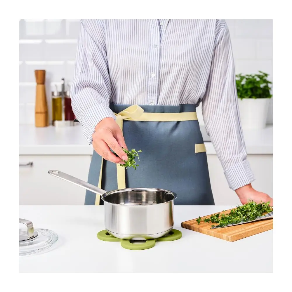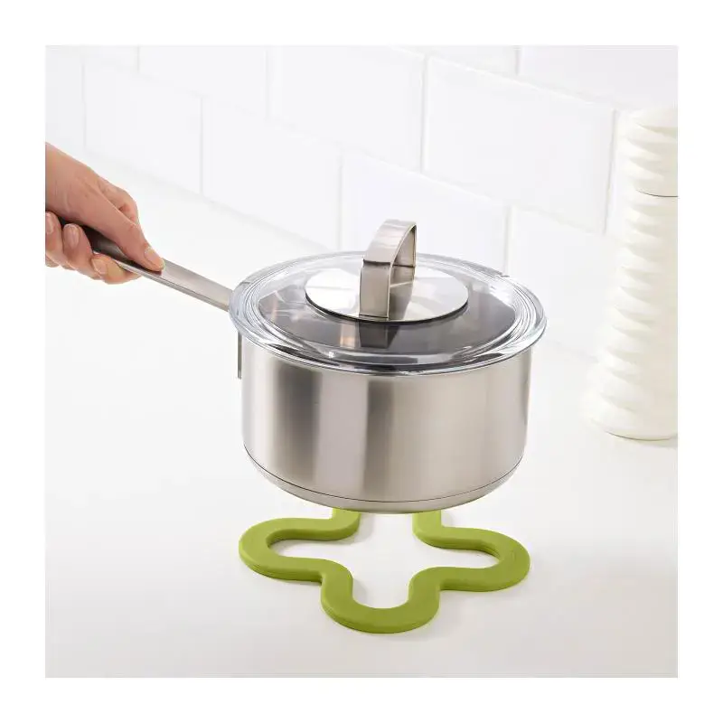 زیر قابلمه ایکیا مدل LAGG از جنس لاستیک سیلیکون ساخته شده است و به راحتی تا دمای 160 درجه سانتی گراد را تحمل می کند. این مدل در ابعاد 18×18 سانتی متر بوده و به خوبی قابلمه های سایز متوسط و بزرگ را پوشش می دهد.